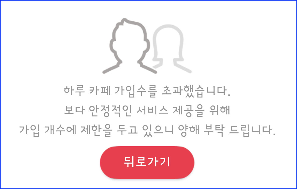 하루에 가입할 수 있는 다음 카페수를 초과한 것입니다.