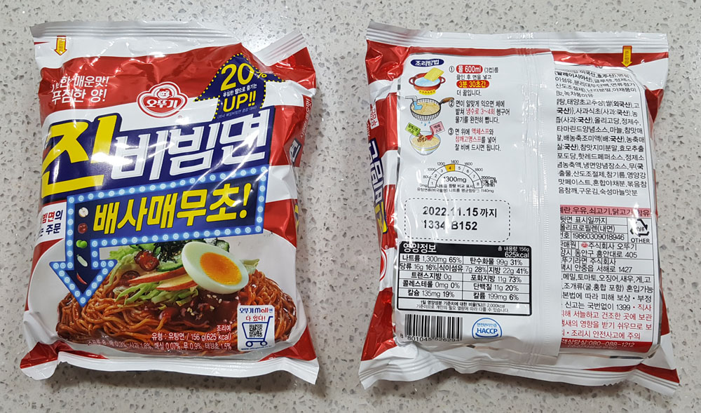 제품 디자인, 원재료, 영양정보 등 조금 달라진 오뚜기 진비빔면 가격, 내용량 (중량) 등 정보