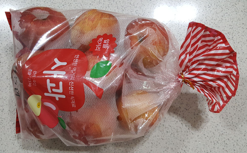 11. 사과 (국산) 2.5kg 1봉 : 6,700원 - 할인가. 사과 10개가 들어 있습니다.