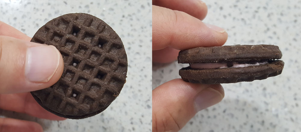 (국산 샌드과자와 비교해) 식감이나 맛 등에서 만족스럽지는 않았습니다.