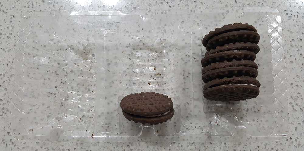 (국산 샌드과자와 비교해) 식감이나 맛 등에서 만족스럽지는 않았습니다.