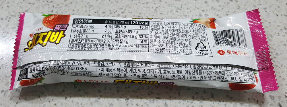 롯데푸드 돼지바 핑크 막대 아이스크림 내용량, 칼로리, 가격, 원재료 및 영양정보 外