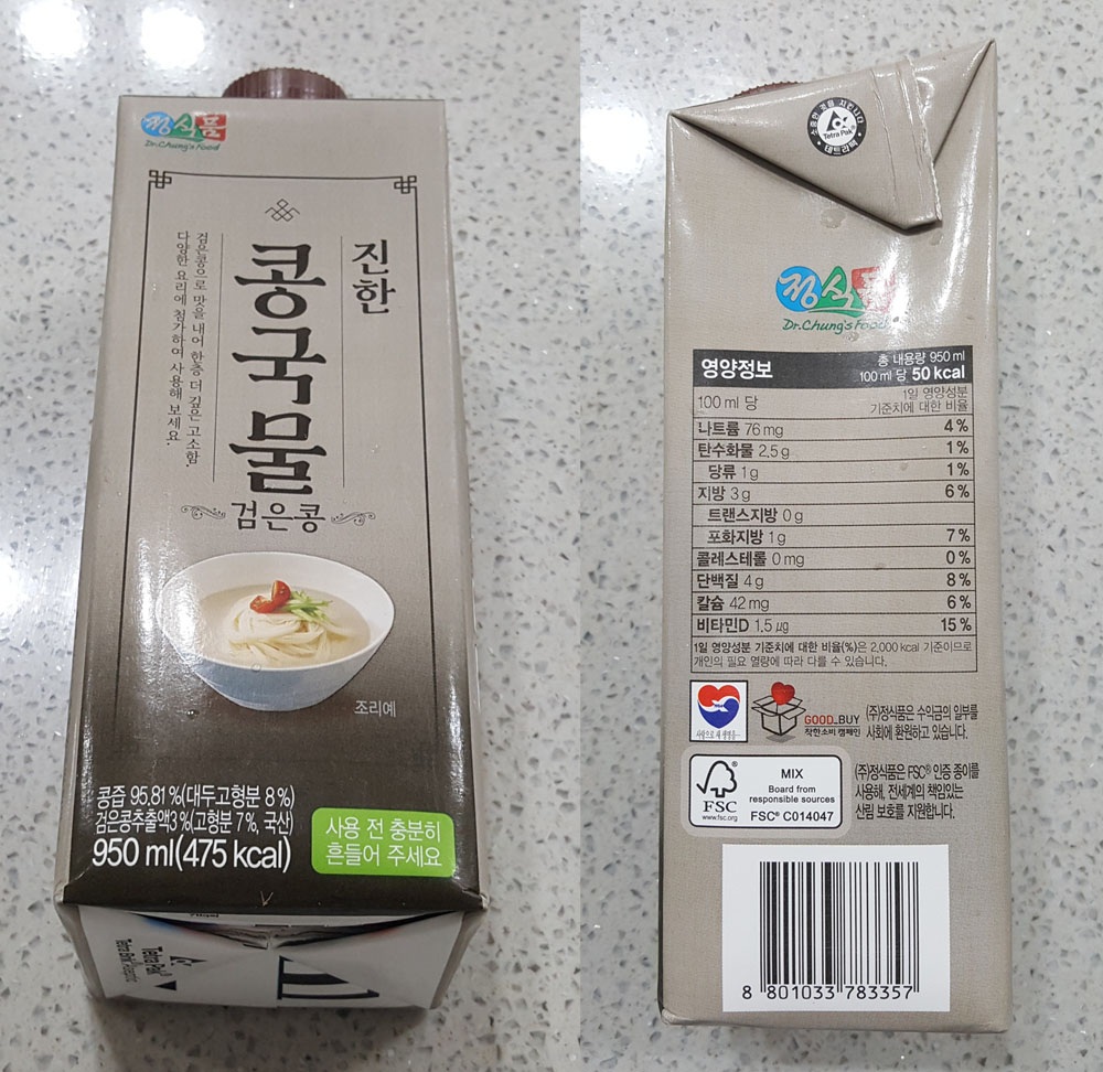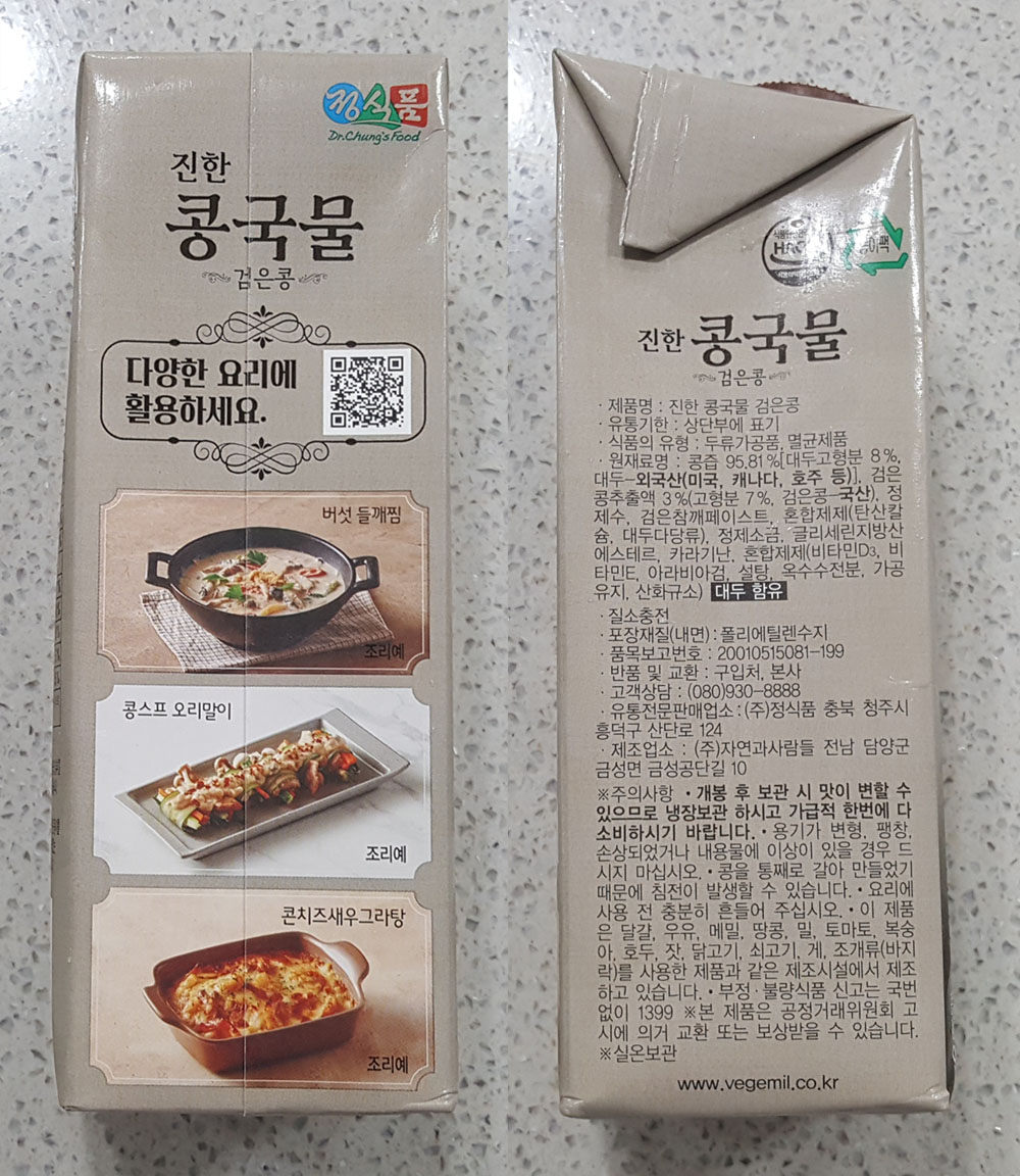 정식품 진한 콩국물 검은콩 내용량, 가격, 품목보고번호, 칼로리, 원재료 및 영양정보, 콩국물 유통기한 外