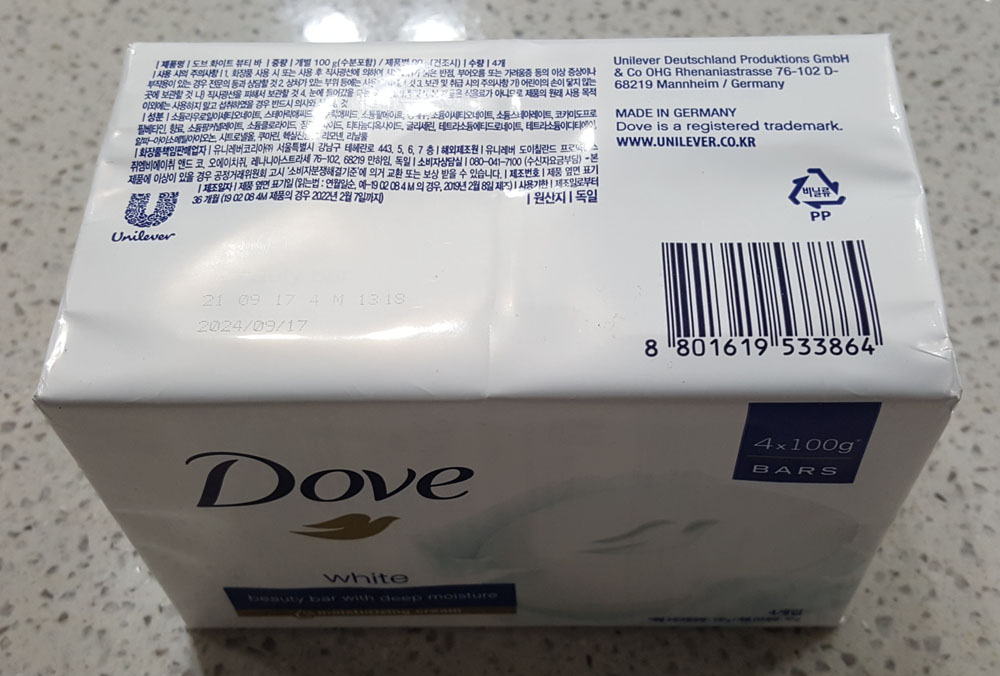 도브 화이트 뷰티 바 (4개 묶음) 중량, 가격, 원산지, 성분 (원재료), 제조일자, 비누 사용기한 外