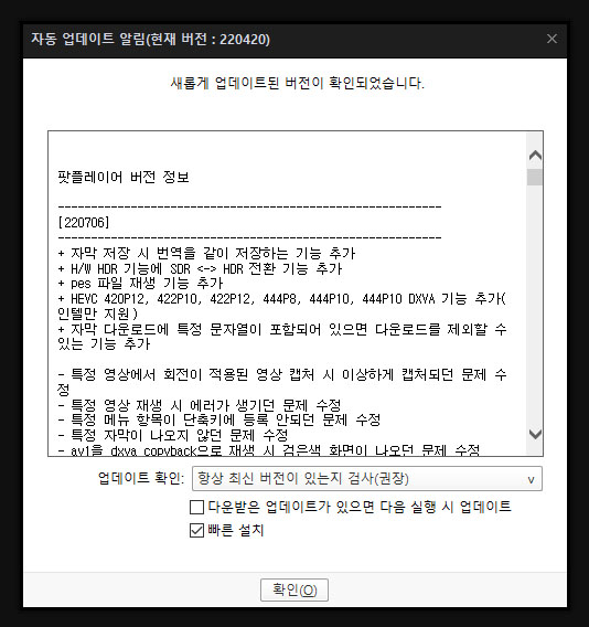 팟플레이어 업데이트 (2022년 7월 6일) 정보 - 기능 추가 및 개선된 부분들