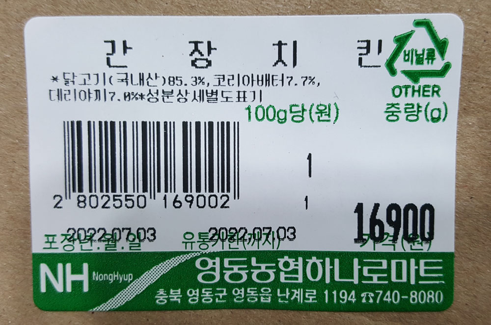 가격 : 16,900원 (2022년 7월 3일. 영동농협 하나로마트)