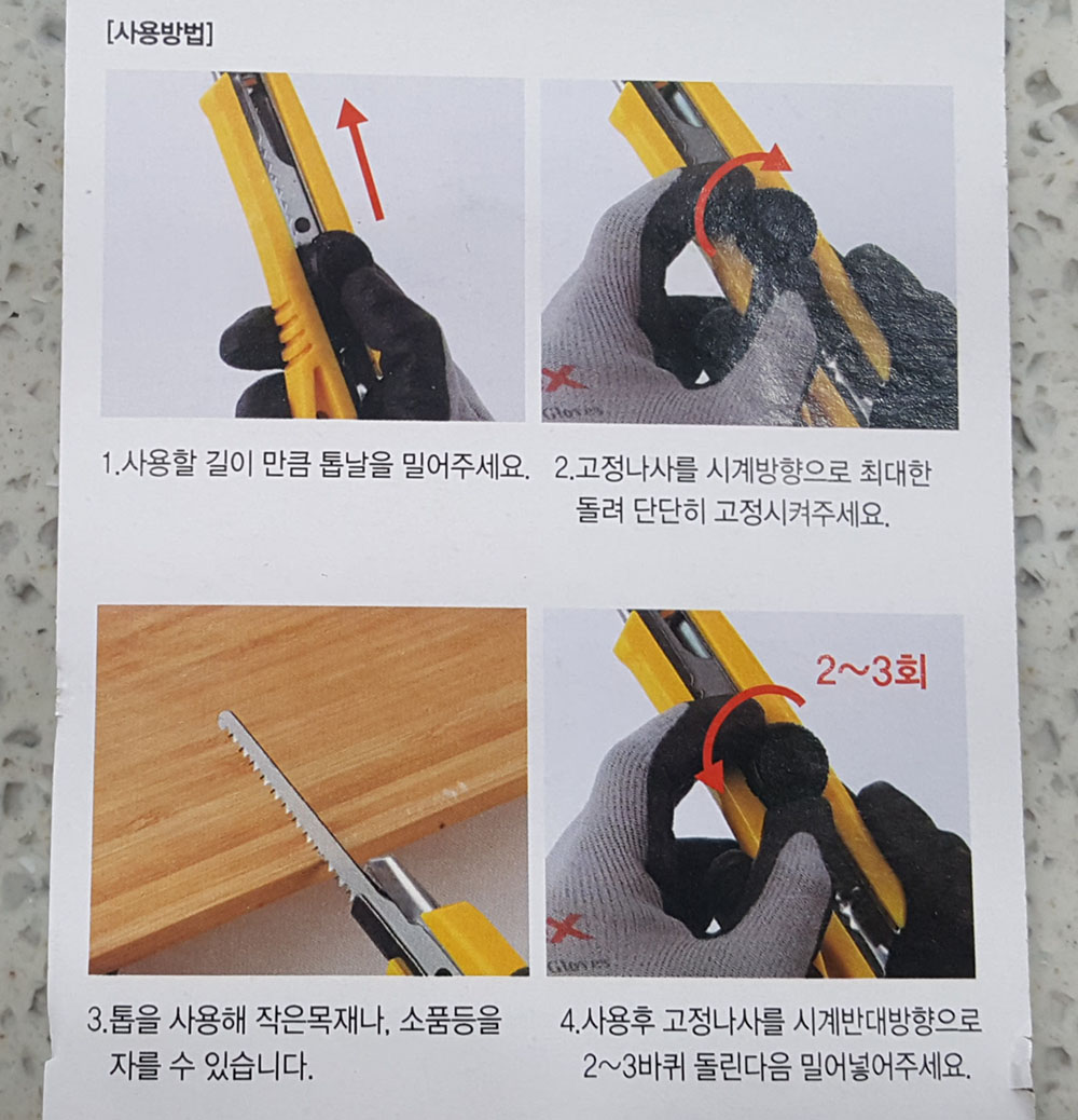 슬라이드 톱 사용방법은 제품 포장에 인쇄된 내용을 참고하면 됩니다.