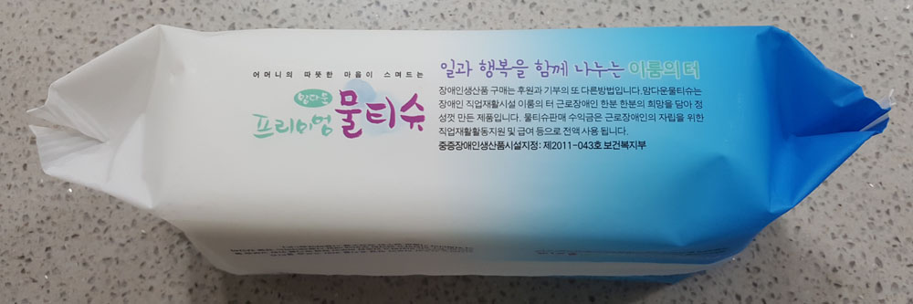 '맘다운 프리미엄 물티슈'는 장애인 직업재활시설 이룸의 터에서 만든 물티슈로