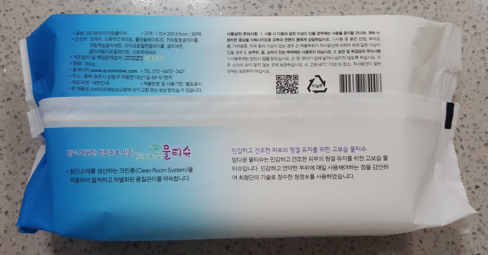 맘다운 프리미엄 물티슈 규격, 중량, 매수, 물티슈 성분, 사용기한 및 주의사항 外