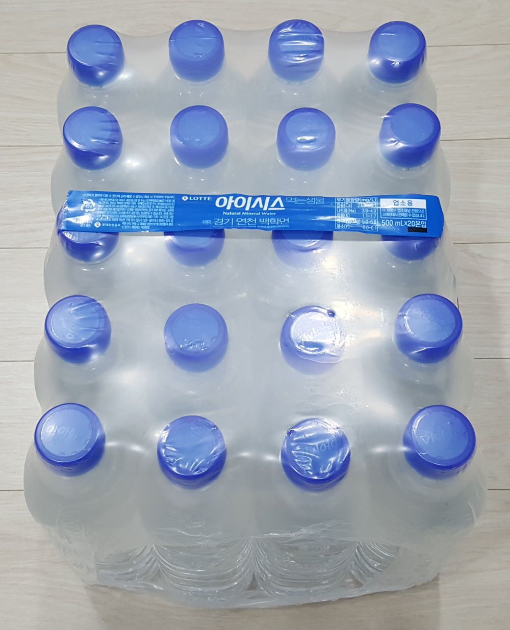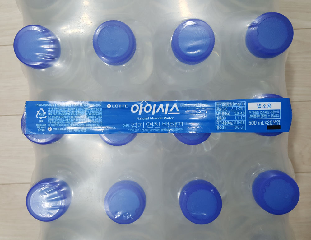 무라벨 생수 아이시스 먹는 샘물 500mL 업소용 제품 수원지, 제조원, 생수 유통기한 및 무기물 함량 外