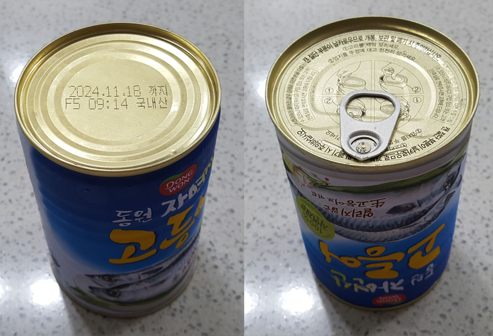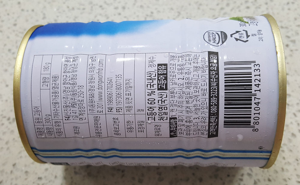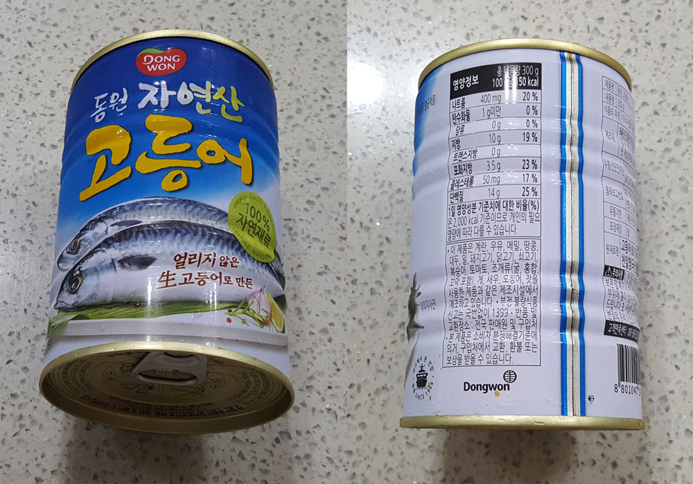 동원 자연산 고등어 캔 300g 가격, 고등어 중량, 제조원, 원재료 및 영양정보, 칼로리, 고등어 캔 유통기한 外
