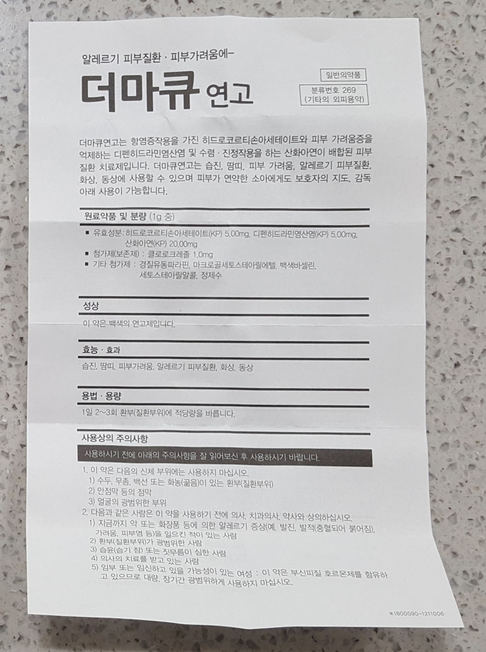 일동제약 더마큐 연고 (피부가려움, 습진 연고) 용량, 가격, 효능 효과, 용법 용량, 주의사항 外 정보