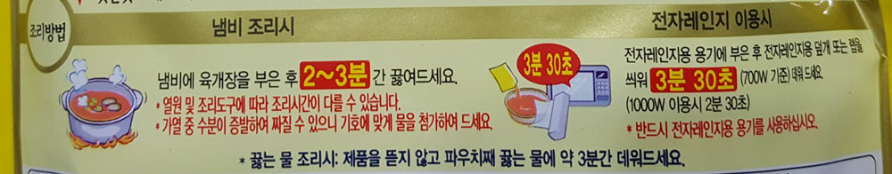 - 전자레인지 이용 시 3분 30초 (700W 기준)