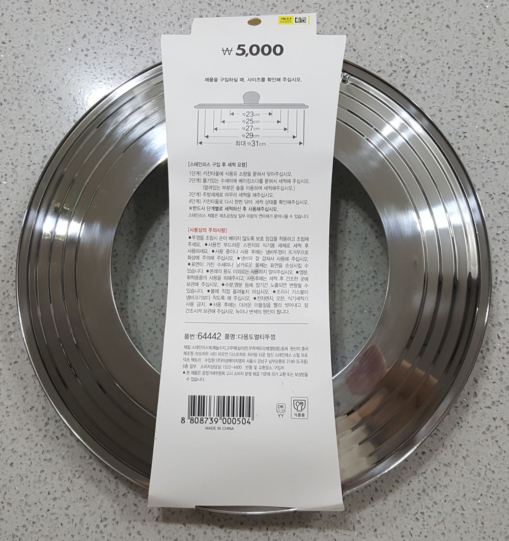 다이소 다용도 멀티 뚜껑 (스텐 유리 뚜껑) 사이즈, 가격, 제조원, 스테인리스 제품 구입 후 세척 요령 外