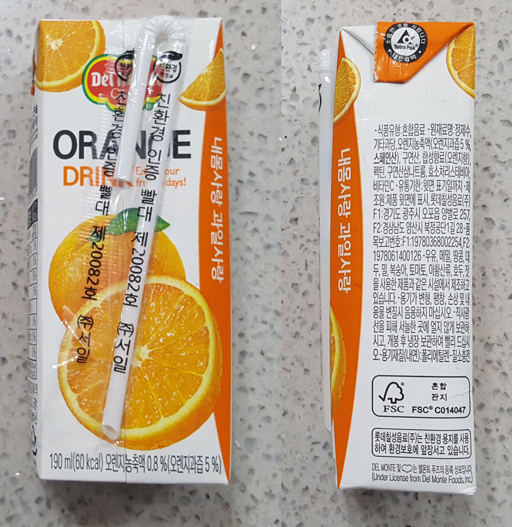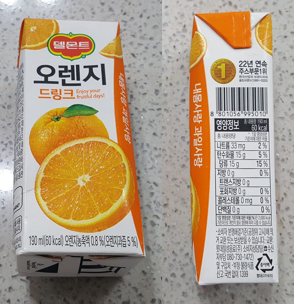 190ml (60kcal) / 오렌지농축액 0.8% (오렌지과즙 5%)