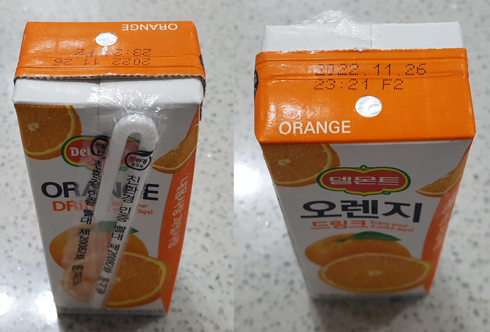 유통기한 : 윗면 표기일까지 / 2022.11.26 23:21 F2 - (팩) 제조일로부터 6개월까지