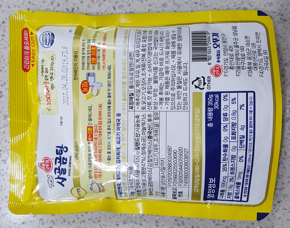 오뚜기 옛날 사골곰탕 중량, 칼로리, 가격, 품목보고번호, 원재료 및 영양정보, 유통기한 外