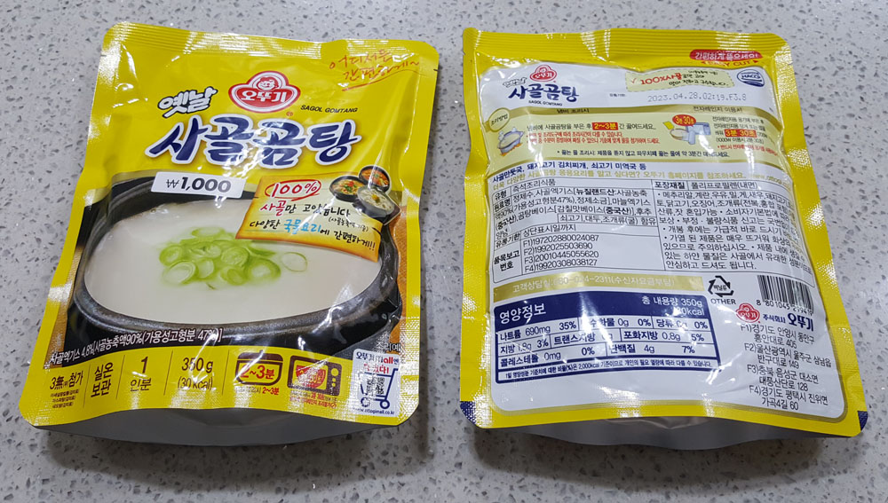 오뚜기 옛날 사골곰탕은 냄비, 전자레인지 등을 사용해 조리할 수 있는데, 자세한 조리방법과 조리시간은 제품 포장에 인쇄된 내용을 참고하면 됩니다.