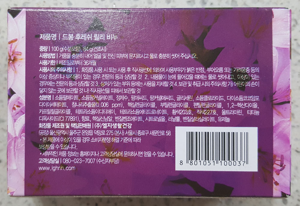 드봉 후레쉬 릴리 비누 중량, 가격, 성분, 비누 사용기한, 주의사항 外