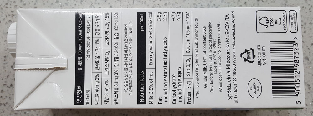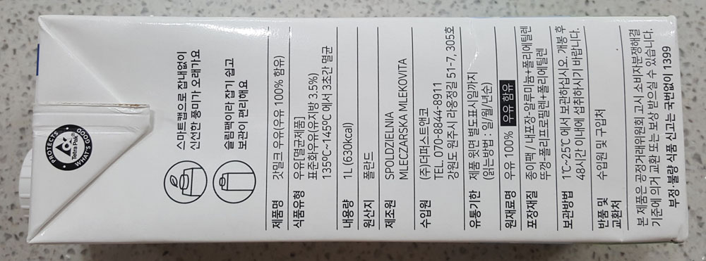 - 폴란드산 멸균우유 갓밀크 우유의 유통기한은 제품 생산일자로부터 1년까지입니다.