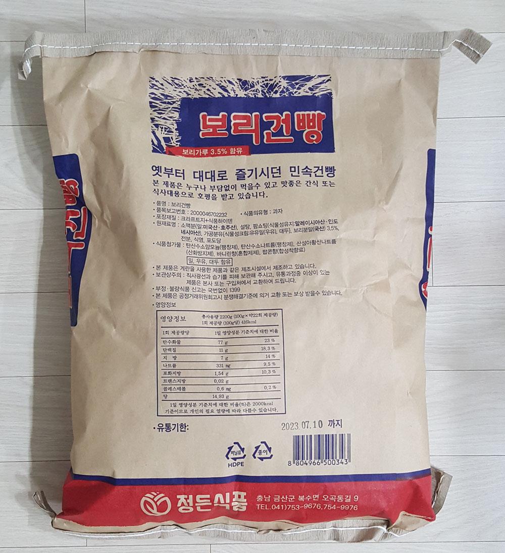 정든식품 보리건빵 2.2kg 한 포대 가격, 포장재질, 보리 건빵 원재료 및 영양정보 外