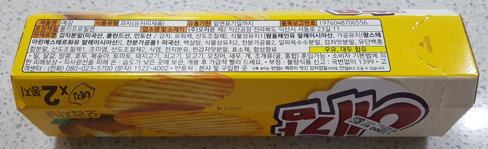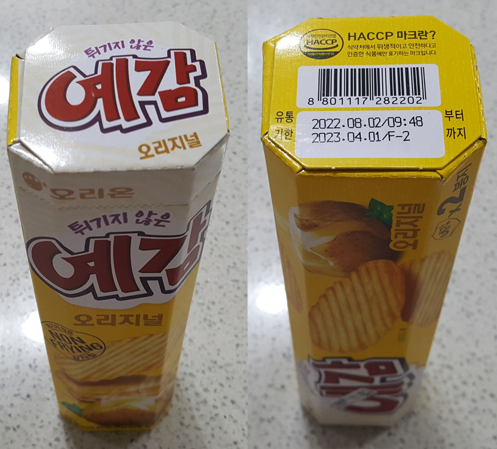 아래에 있는 것은 오리온 예감 오리지널 과자에 관한 정보로, 제품 포장에 인쇄된 내용을 그대로 옮겨온 것입니다.
