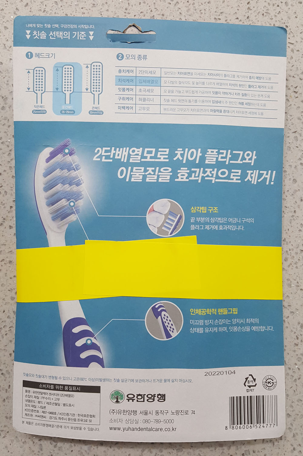 아래에 있는 것은 유한덴탈케어 센서티브 (2단배열모)에 관한 정보로, 제품 포장에 인쇄된 내용을 그대로 옮겨온 것입니다.