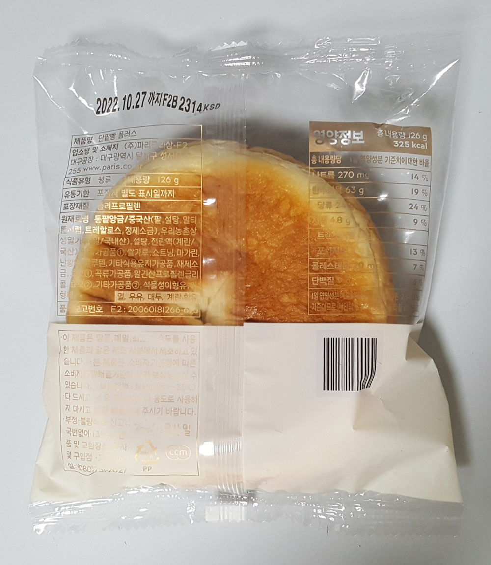 우리밀을 더한 단팥빵 플러스 내용량, 칼로리, 단팥빵 원재료 및 영양정보, 유통기한, 보관방법 外
