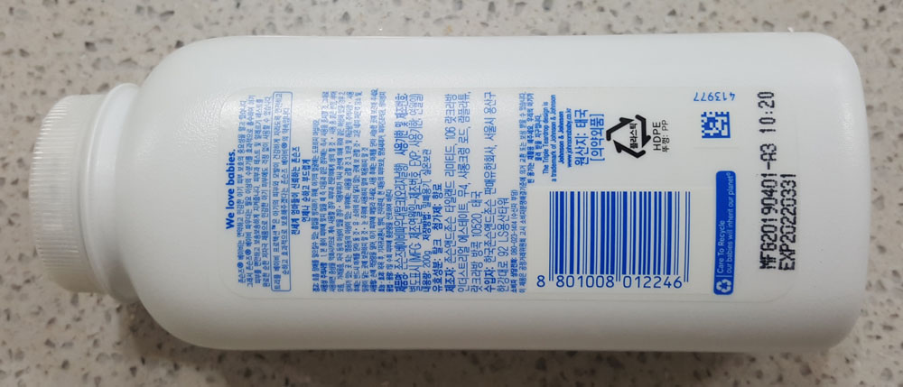 아래에 있는 것은 존슨즈 베이비 파우더 (탈크) (오리지날향)에 관한 정보로, 제품 용기에 인쇄된 내용을 그대로 옮겨온 것입니다.