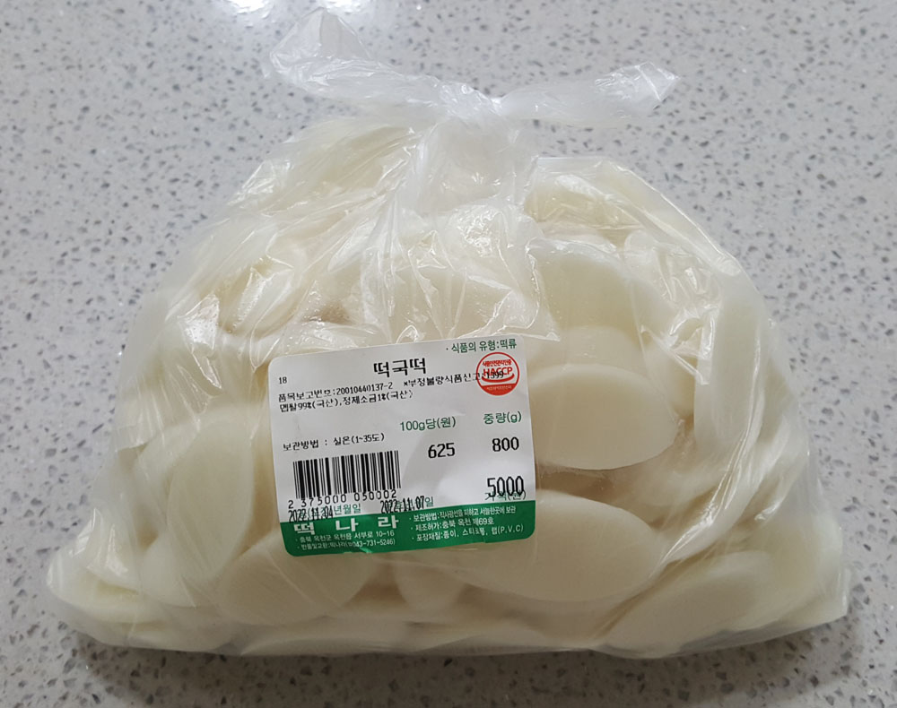 - 떡국떡은 100g당 625원에 판매되고 있습니다.