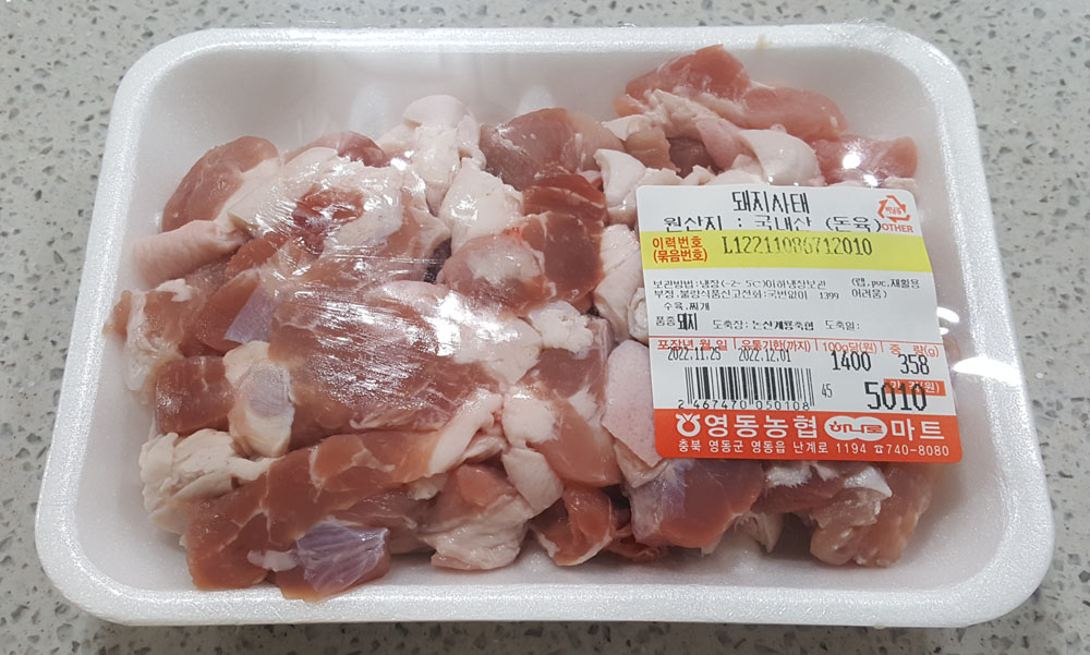 4. 돼지 사태 (국내산) 358g 찌개용 돼지고기 : 5,010원