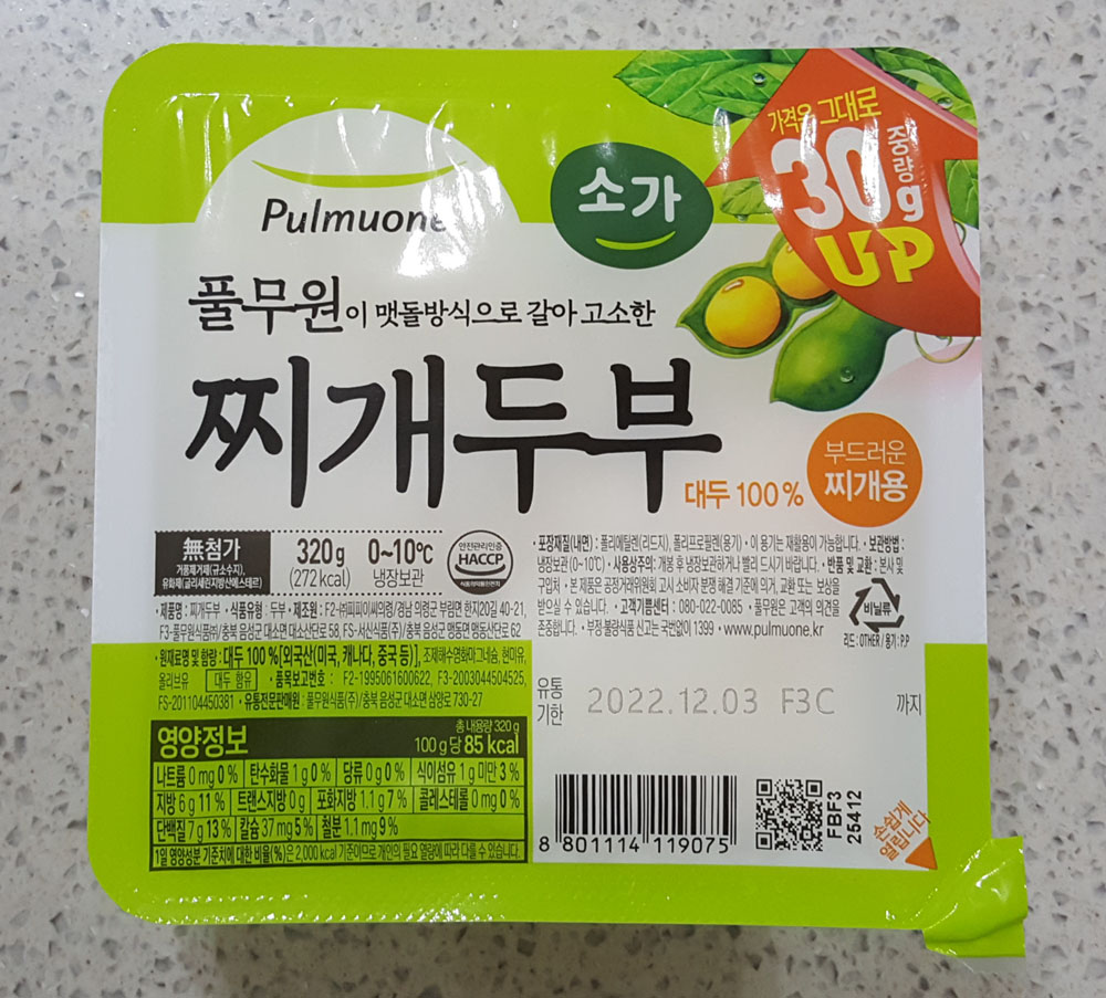 풀무원 찌개두부 320g 가격, 칼로리, 포장재질, 두부 원재료 및 함량, 영양정보, 유통기한 外