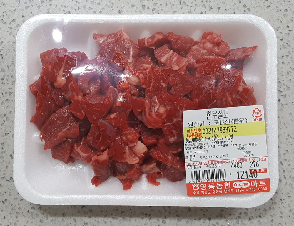 14. 국거리용 (국내산) 한우 설도 276g : 12,140원