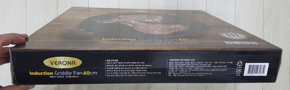 아래에 있는 것은 베로나 인덕션 그리들 팬 40cm 제품에 관한 정보로, 제품 포장과 인터넷에 있는 상품 소개 내용에서 발췌, 요약한 것입니다.