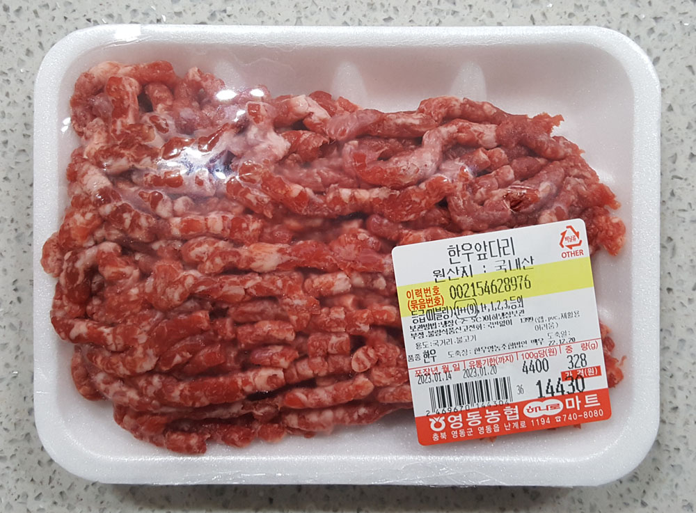 3. 한우앞다리 다짐육 국내산 328g : 14,430원