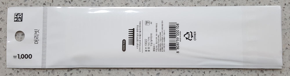 다이소 국산 머리빗 TWO TYPE 빗살 일자빗 (대) 가격, 재질, 제조원