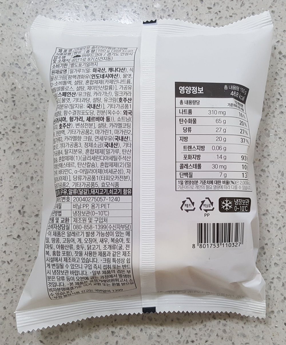 CU 편의점 연세우유 솔티카라멜 생크림빵 가격, 중량, 칼로리, 원재료 및 영양정보, 보관방법, 소비기한 外