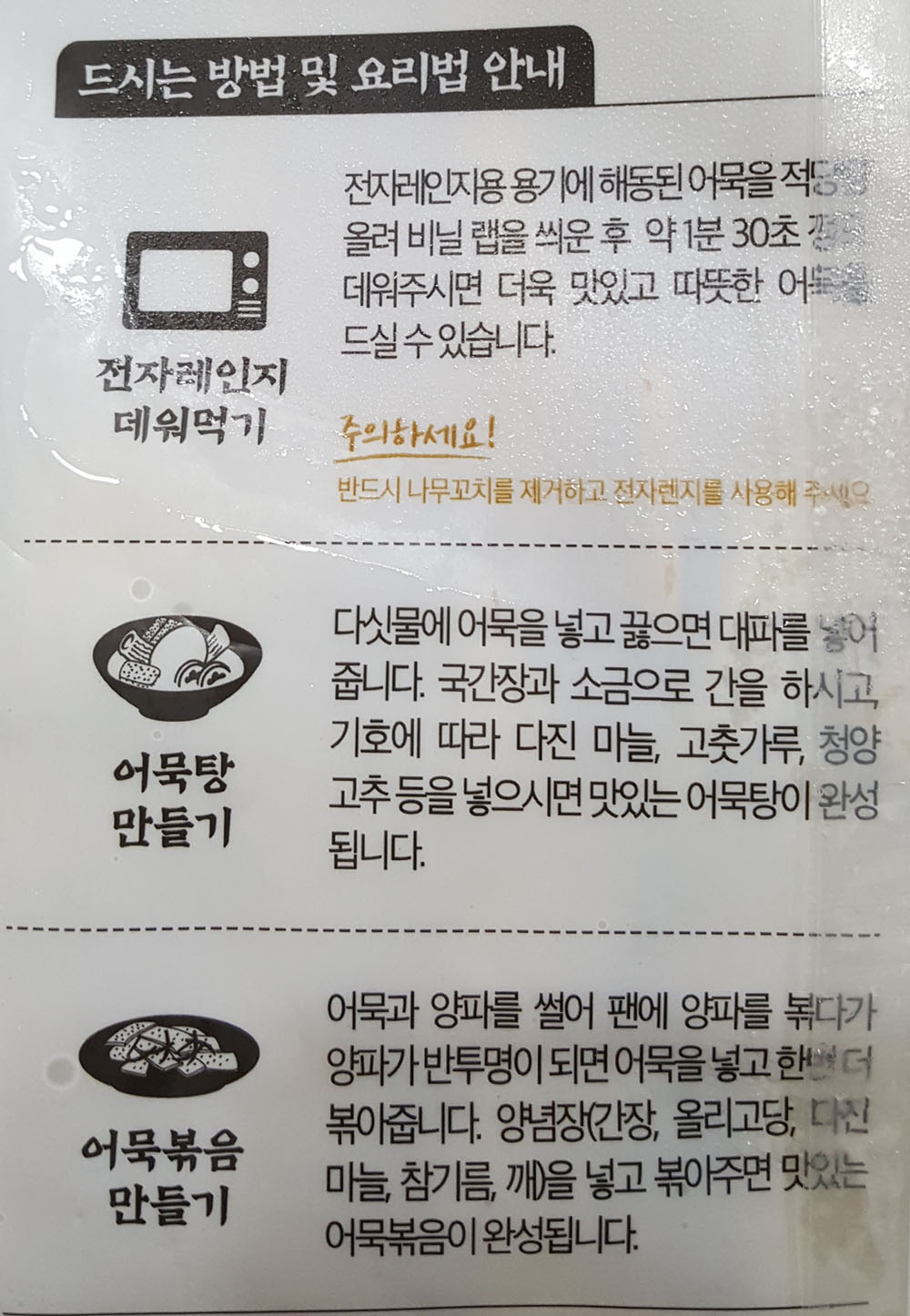 전자레인지 데워먹기, 어묵탕 만들기, 어묵볶음 만들기 등