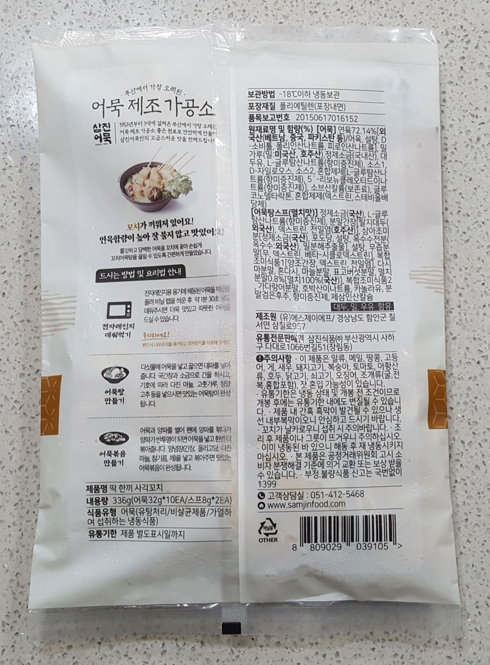 식품유형 : 어묵 (유탕처리 / 비살균제품 / 가열하여 섭취하는 냉동어묵)