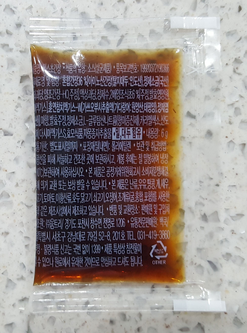 액상과당, 정제수, 2배양조식초 6% [주정, 발효영양원, 맥아엑기스]