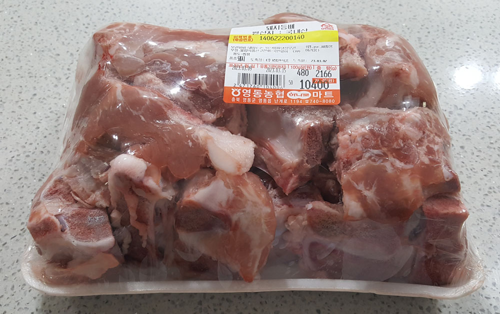 6. 돼지 등뼈 (돈육등뼈, 국내산) 2166g : 10,400원
