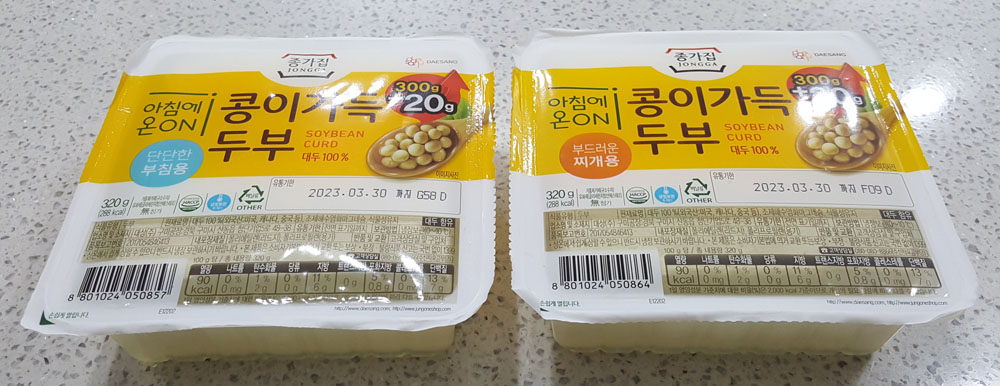 6. 종가집 아침에 ON 콩이 가득 두부 (단단한 부침용) 320g : 700원