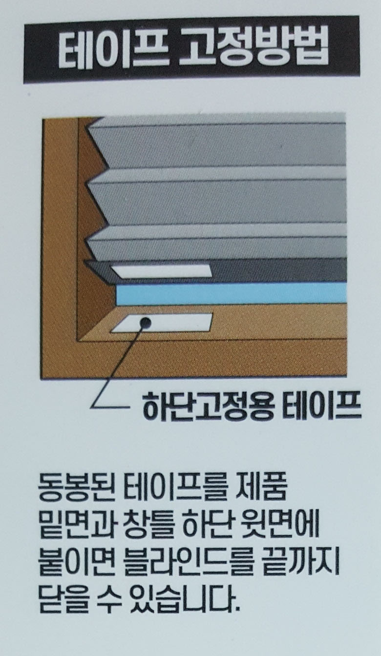 동봉된 테이프를 제품 밑면과 창틀 하단 윗면에 붙이면 블라인드를 끝까지 닫을 수 있습니다.