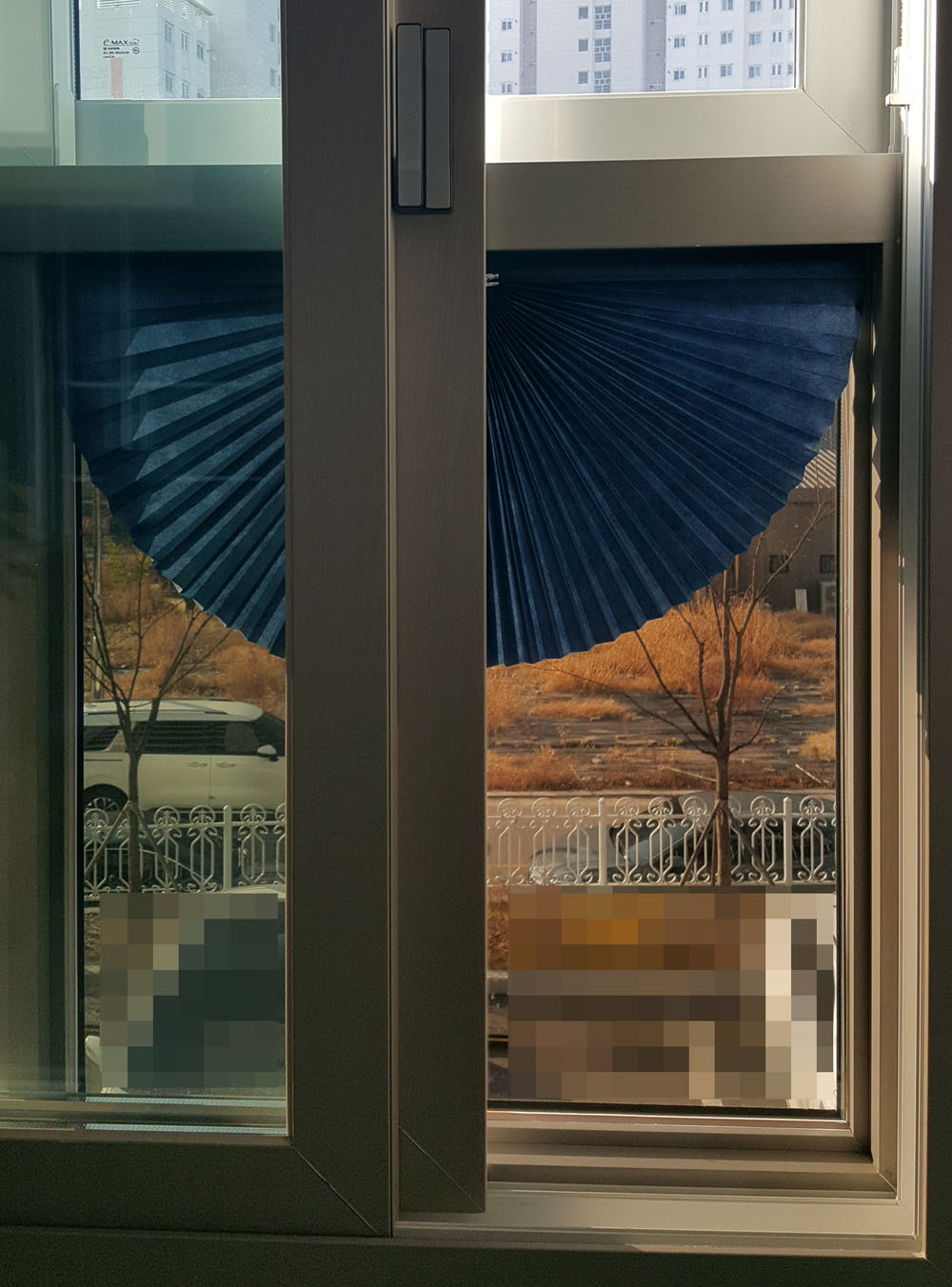 아래에 있는 것은 다이소에서 구매한 간편 설치 블라인드(붙이는 셀프 블라인드) 제품에 관한 정보로