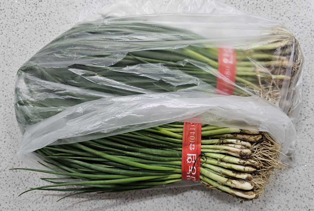 - 양이 많지 않게 단으로 묶인, 줄기 부분이 굵지 않은 흙쪽파가 있어 파김치를 담그기 위해 구매했습니다.