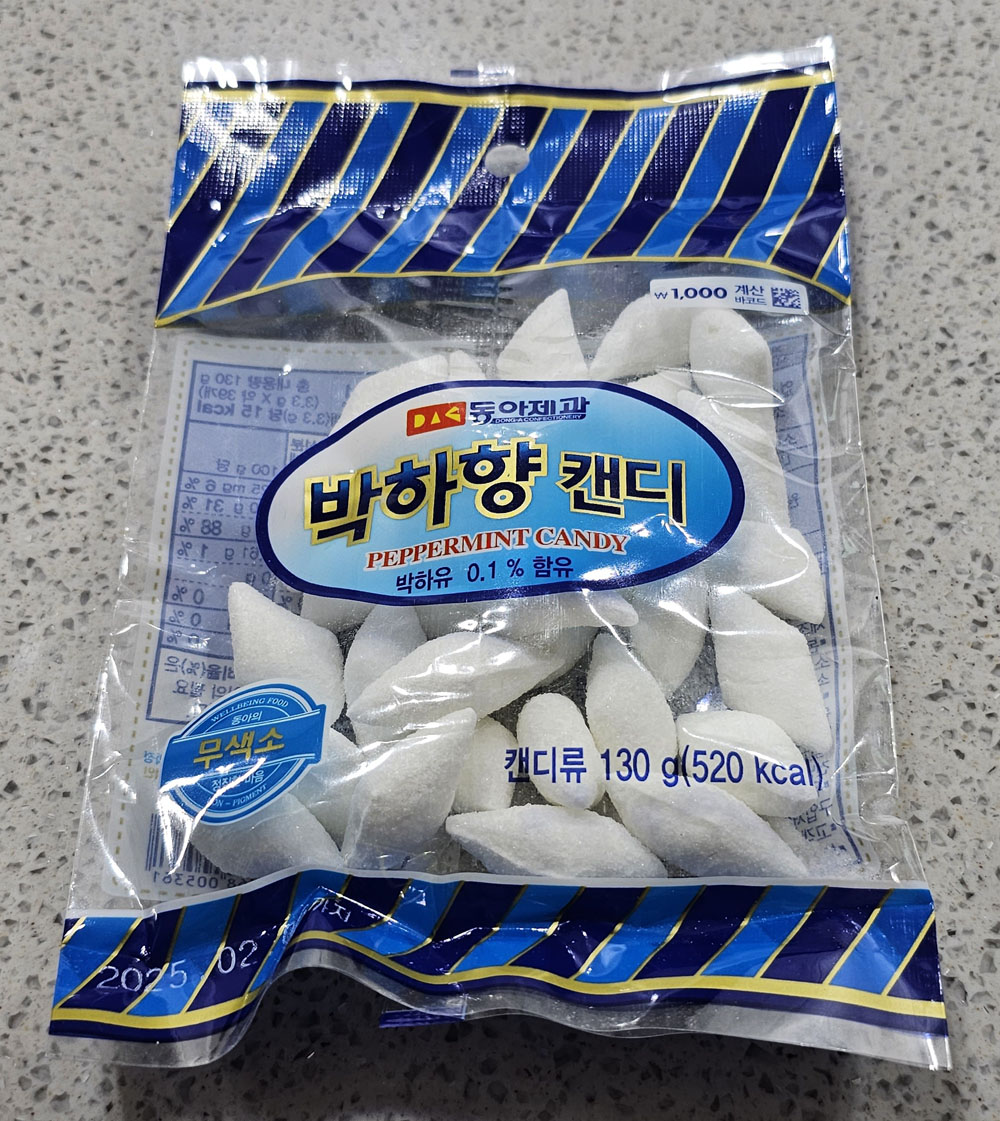 아래에 있는 것은 다이소에서 구매한 동아제과 박하향 캔디(130g)에 관한 정보로