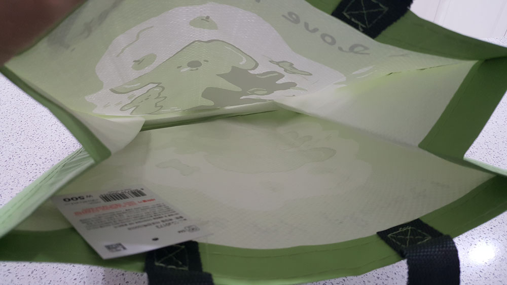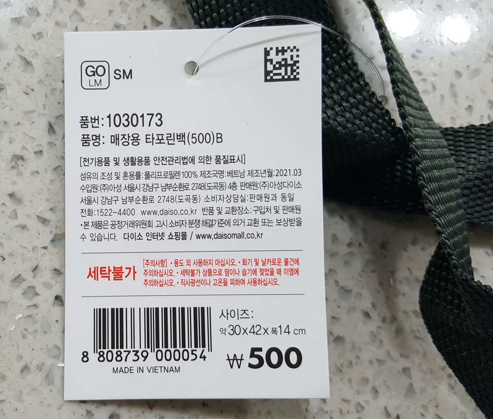 다이소 매장용 타포린백 (500) B 가격, 재질, 사이즈, 제조국, 세탁 등 주의사항 外