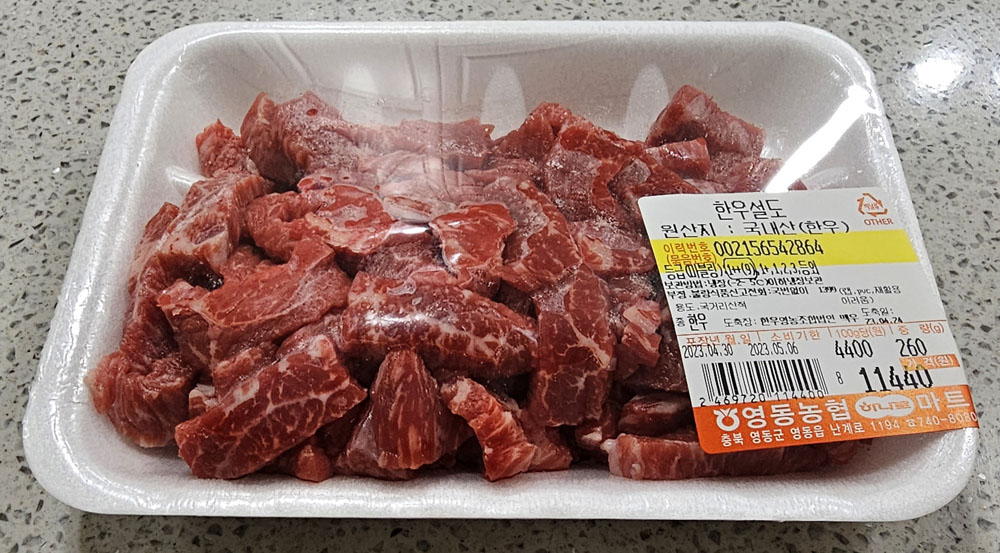 - 국거리용 국내산 한우 설도 100g의 가격은 4,400원입니다.