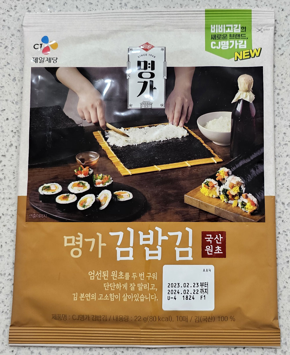 이번에 구매한 CJ 명가 김밥김은 이전과 포장 디자인이 조금 변했고