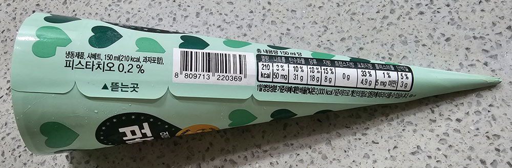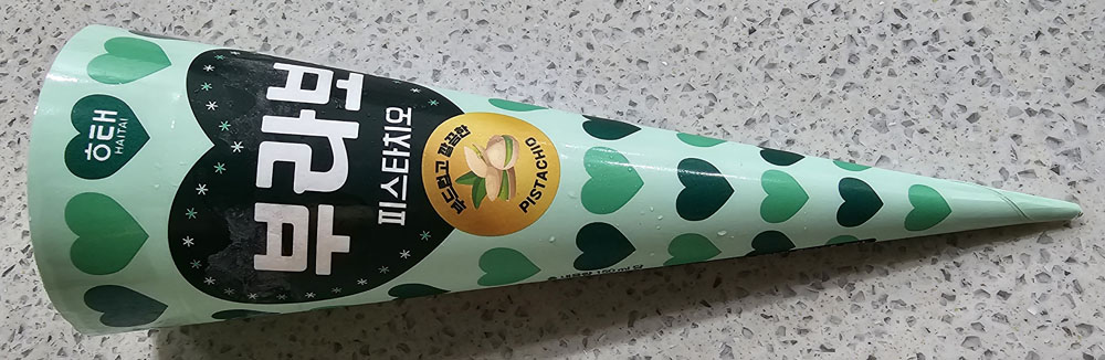 아래에 있는 것은 해태 부라보 피스타치오 콘 아이스크림에 관한 정보로